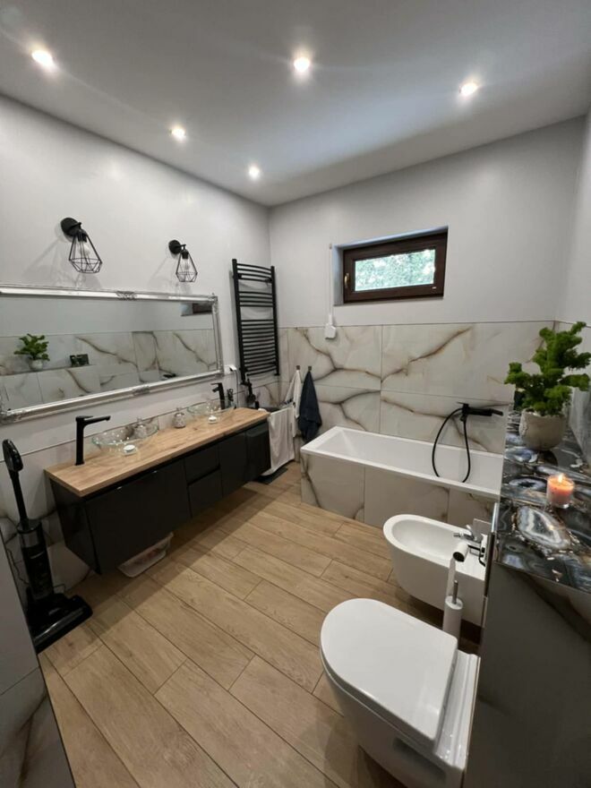 Nieruchomość oferowana jest z kompletnym wyposażeniem – elegancką zabudową kuchenną z wysokiej klasy sprzętem AGD oraz umeblowaniem w całym domu, co pozwala na natychmiastowe wprowadzenie się bez dodatkowych nakładów.