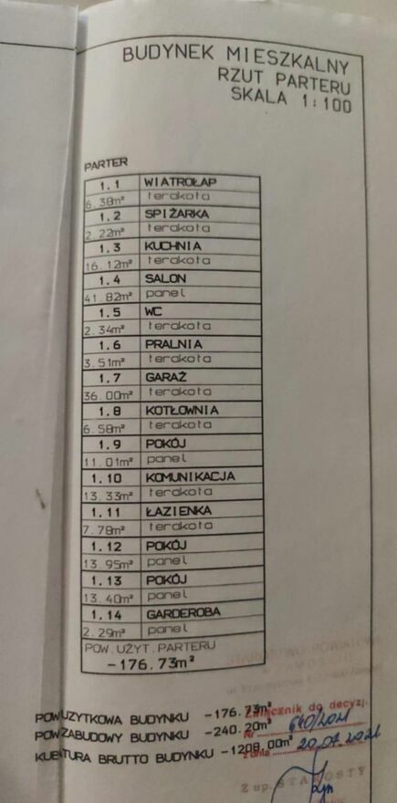 Powierzchnia użytkowa parteru wynosi około 176,7 m² i obejmuje: